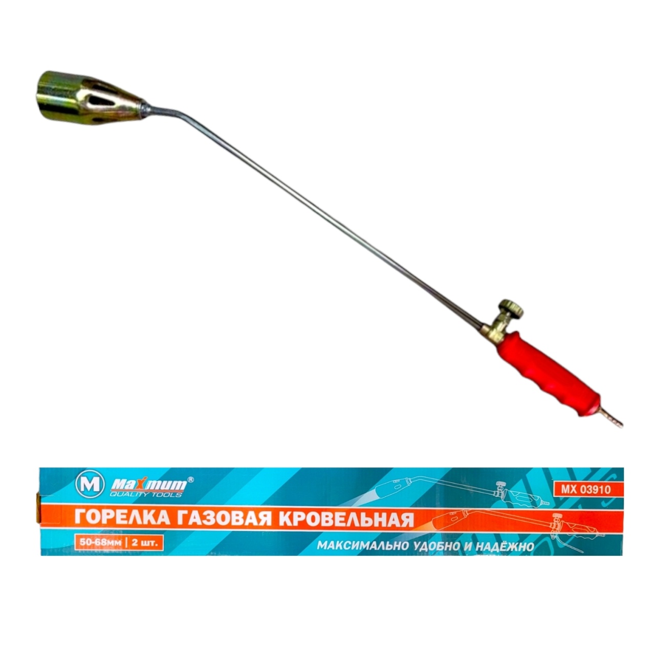 Газовоздушная кровельная горелка 50x680 мм от "Maximum QualityTools" - это надежное устройство, которое применяется при проведении кровельных работ, сушке и нагреве панелей и форм, кирпичной кладке, сжигании травы, а также для дорожных работ. Горелка оборудована регулировочным вентилем и безопасна в использовании. Расход подаваемой смеси и её состав можно регулировать, чтобы обеспечить устойчивое пламя нужной конфигурации.