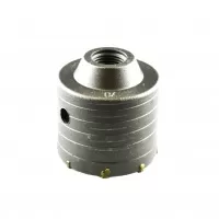 Большое количество вариантов комбинаций с данной оснасткой можно производить благодаря особым резьбовым соединениям. Крепление коронки - внутренний конус М 22 позволяет осуществлять быструю сборку благодаря удобной резьбе. Корпус коронки под бетон 70 мм имеет внешние канавки, которые способствуют увеличению срока службы и уменьшению трения.