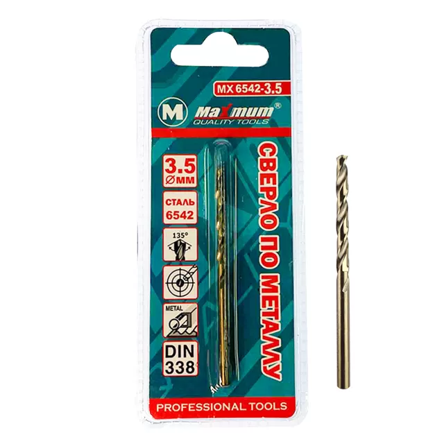 Сверло по металлу 3,5 мм от Maximum из быстрорежущей стали DIN 338 с цилиндрическим хвостовиком предназначено для работы с металлом, деревом и пластиком. Сверло 3,5 мм выдерживает интенсивные нагрузки, так как имеет повышенные прочностные характеристики.